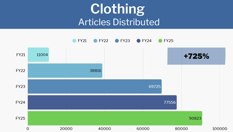 While FY25’s record setting food statistics stand far above any prior year, the new clothing record established in FY25 narrowly exceed the prior record, which was set in FY16.