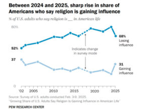 According to a Pew Research Center report, religion is gaining influence in American life. More specifically, there was a tremendous increase in the percentage of survey respondents who believed religion was gaining influence in American life in 2025 when compared to 2024 and also when compared to recent years. Over the most recent one year period, the percentage of respondents who believed religion is gaining influence in American life rose from 18% to 31%. The 31% number is the highest Read More …