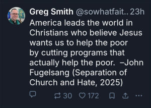 I miss Twitter (see Goodbye Twitter, X, or Whatever You’ve Become) and am still finding my way on alternative platforms. In March, I made a post on Threads that gained far more traction than any I had made or have made since (see My One of a Kind Ash Wednesday Experience). Yesterday, I published a post on Bluesky that performed better than anything else I've ever shared on the platform. My post is a quote from John Fugelsang's new book - Separation of Church and Hate: A Sane Read More …